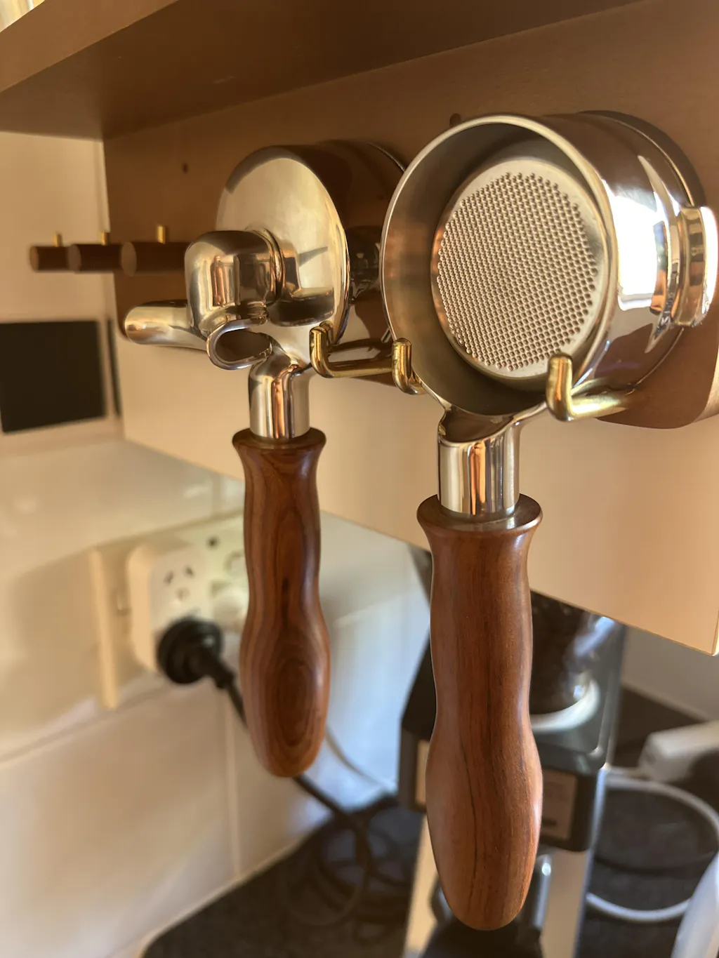 Portafilter feels and handles great, ergo comfy to use and well balanced.